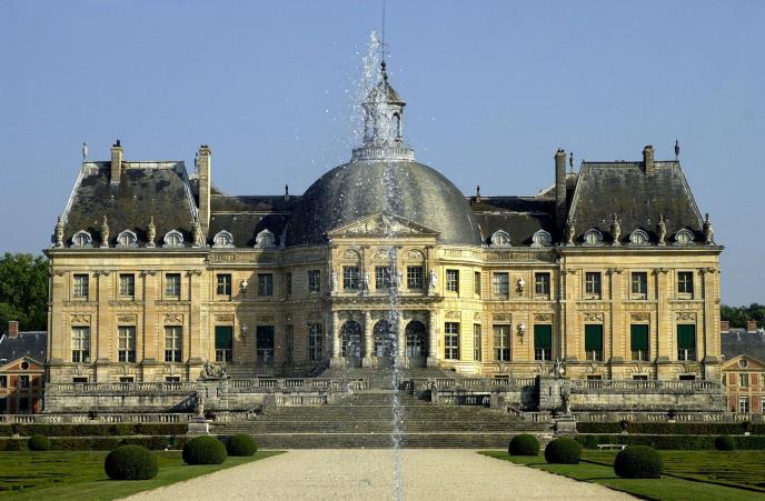 Zamak koji je dizajniran za ministra finansija kralja Luja XIV Nikolu Fukea ima balsku dvoranu sa mermernim podom, trpezariju sa velikim lusterom i bašte sa precizno orezanim biljkama.