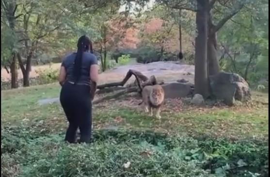 Video objavljen na Instagramu tokom vikenda prikazuje ženu u odeljku sa lavovima u Zoo-vrtu u Bronksu.