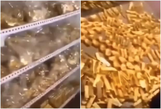 Na snimku se mogu videti istražitelji kako slažu na hiljade zlatnih poluga, od kojih većina ne može uopšte da stane na police.