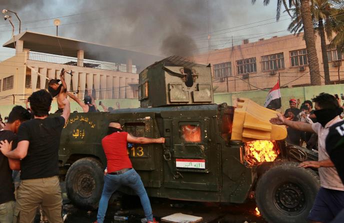 Protest je počeo 1. oktobra na Trgu Tahrir u Bagdadu, kada je policija počela da baca šok bombe i ispaljuje gumene metke i suzavac da rastera demonstrante.