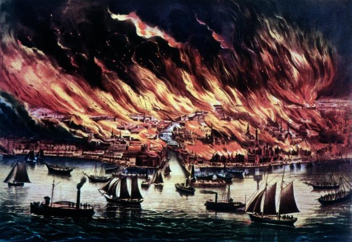Veliki požar koji je besneo Čikagom 1871, od 8. do 10. oktobra, uništio je hiljade zgrada, ubio oko 300 ljudi, 100.000 ostavio bez domova, a šteta je u to vreme iznosila oko 200 miliona dolara.
