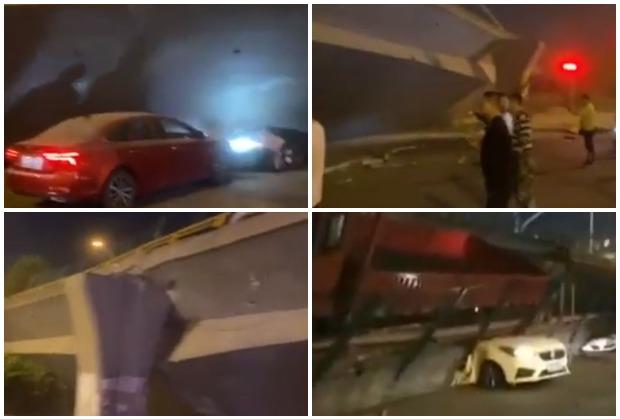 Video snimci koje su kineski mediji objavili preko interneta pokazuju kako nadvožnjak popušta i pada na vozila ispod. Takođe se na snimcima vide dva automobila potpuno zdrobljena, i farovi kako vire iz velikog bloka sivog betona.