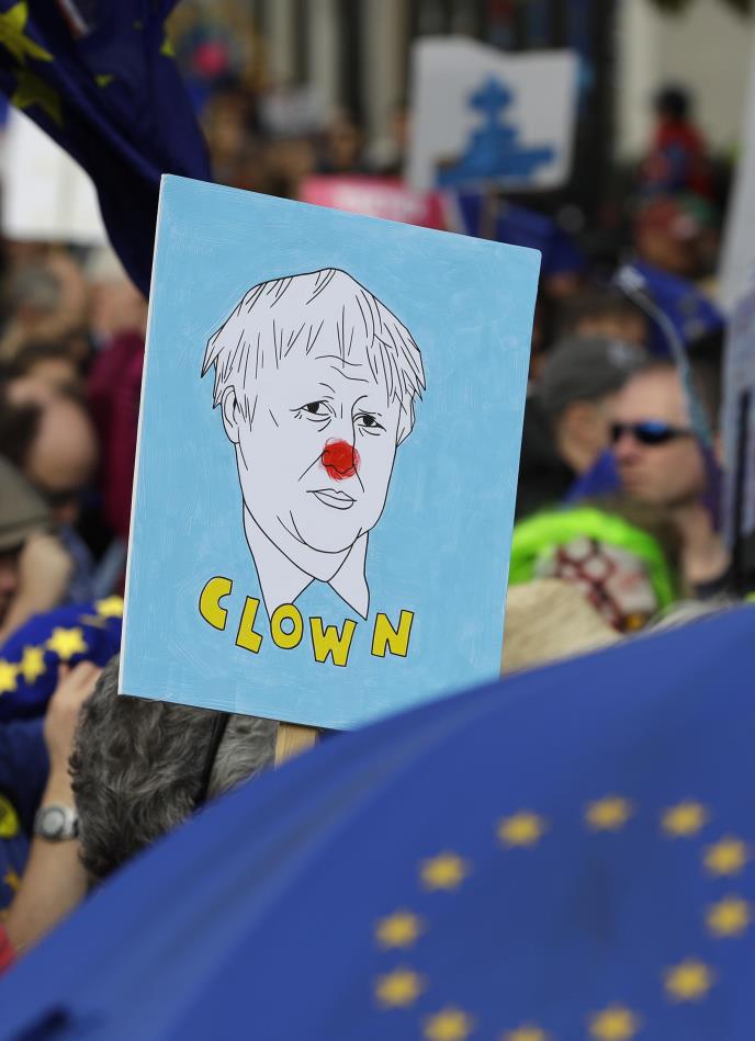 U jednoj od ulica je grupa demonstranata s zvončićima vezanim za noge i štapovima igrala tradicionalni engleski ples moris uz povike "Moris a ne Boris", misleći na premijera Borisa Džonsona.