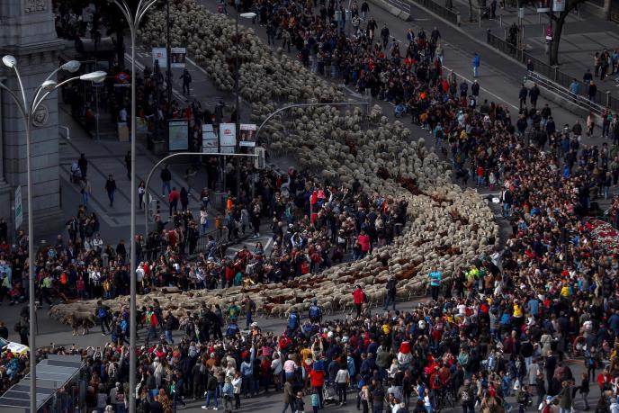 Ovce su danas zamenile automobile na ulicama Madrida, dok su pastiri "upravljali" svojim stadima kroz srce španske prestonice, sledeći drevne migracione puteve stoke.