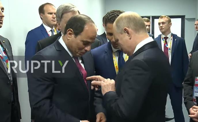 Putin i Sisi su tokom kratkog razgovora u hodniku, znatiželjno ispitivali sličnost između kravata. Putin je čak uzeo u ruku Sisijevu kravatu kako bi je detaljnije pogledao i potvrdio njihovu identičnost.