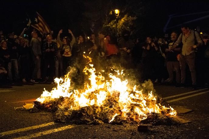 Pojedini učesnici protesta palili su fotografije kralja i nosili katalonske zastave, dok su pojedinci pokušavali da se probiju do kordona policije.