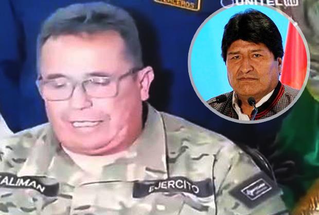 "Nakon analize unutrašnje konfliktne situacije, tražimo od predsednika da se odrekne predsedničkog mandata kako bi se omogućilo smirivanje i stabilnost, za dobro naše Bolivije", rekao je general na nacionalnoj televiziji.