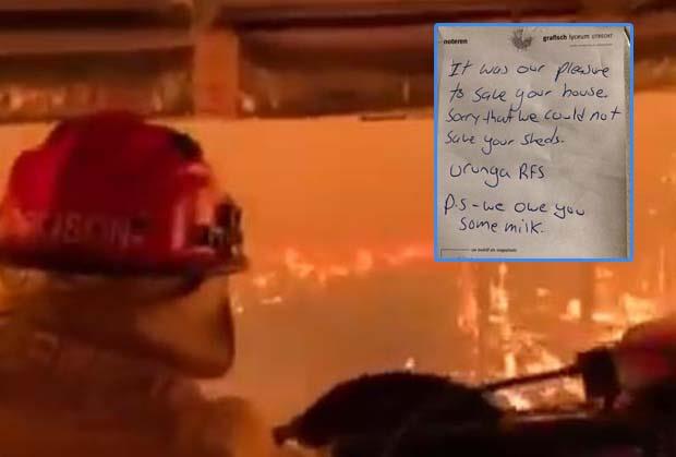 Sekfi se vratio svojoj kući u Novom Južnom Velsu i pronašao poruku lokalnih vatrogasaca: "Drago nam je da smo uspeli da spasimo vašu kuću. P.S. Dugujemo vam mleko", kaže se u poruci.