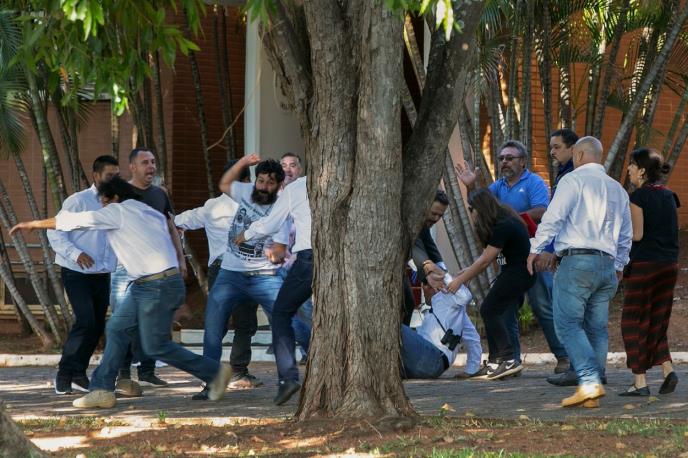Ispred ambasade su se za vreme incidenta okupile grupe Brazilaca, jedni koji podržavaju Madura, drugi Gvaida, i koje su se sukobile, ali ih je policija razdvojila.