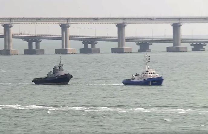Izveštač Rojtersa na Krimu, video je brodove obalske straže koji su u nedelju vukli tri broda kroz Kerčki moreuz prema Crnom moru, pripremajući ih za primopredaju.