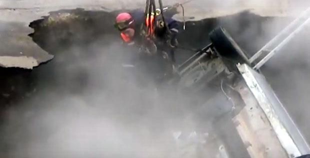 Snimak vađenja vozila iz kratera sa vodom temperature oko 75 stepeni napravljen je odmah posle tragedije, a na njemu se vidi kako para i dalje kulja oko spasilačke ekipe.