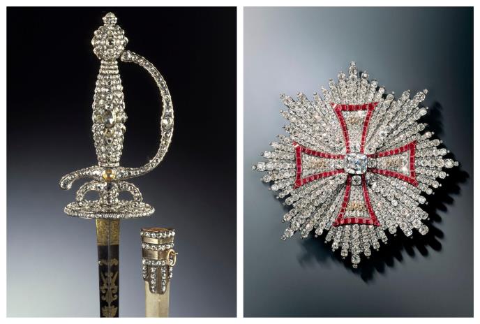 Od oko 100 blistavih komada, rekao je on, ostavljeni su mnogi, uključujući dijamantske kopče za cipele i dugmad, biserne ogrlice i kraljevski mač.