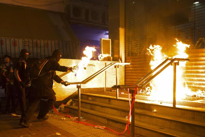 Policija u Hongkongu saopštila je danas da su demonstracije za vikend, najavljene kao mirni protest, sporadično prerasle u nerede jer su demonstranti bacali molotovljeve koktele i ispisivali grafite po zgradama vlade.