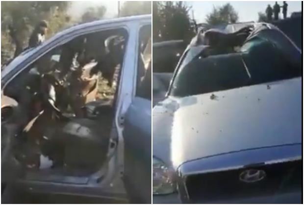 Sudeći po fotografijama, „raketa-oštrica“ probija krov vozila. Kako se navodi, udar je izveden dronom.