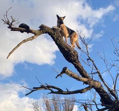 Spasavanje odraslog vučjaka s vrha drveta svakako nije bilo u planu za ekipu vatrogasaca iz Sakramenta, ali su pritekli u pomoć Šeron Terston, čiji je dvogodišnji pas u jurnjavi za mačkom završio na preko četiri metra visine, u krošnji jednog osušenog drveta.
