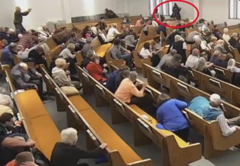 Može se videti da je napadač zapucao dok su vernici mirno sedeli. Tada su svi polegali da potraže zaklon i počeli su da vrište, a jedan član obezbeđenja je potom upucao napadača.