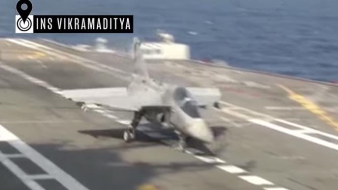 Vest o uspešnom sletanju na palubu nosača aviona Vikramaditja tokom testiranja u Arapskom moru saopštilo je indijsko ministarstvo odbrane, dodajući da je pre sletanja na nosač obavljen čitav niz probnih sletanja na klasičnim poletno-sletnim pistama.