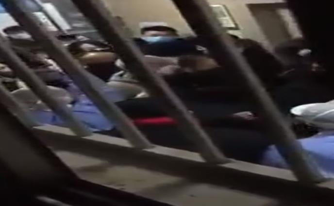 Na snimku se vidi hodnik krcat pacijentima. Jedna radnica bolnice viče: "Svi prestanite da pričate, slušajte me. Tišina."