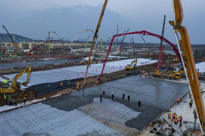 Veliki broj snimaka prikazuje građevinske mašine u akciji tokom izgradnje bolnice "Lejšenšan", druge od ukupno četiri koje za kratko vreme treba da budu podignute u Kini.