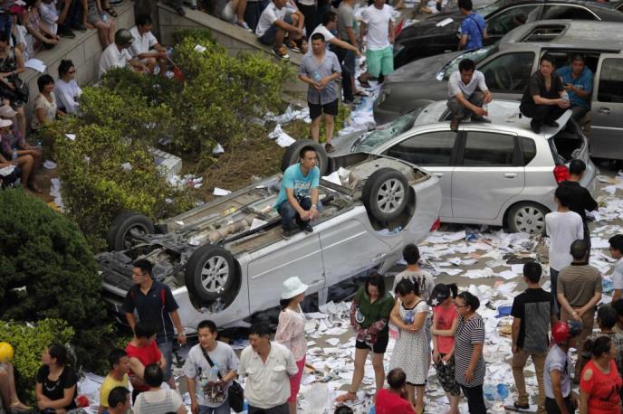 Lokalna policija je posle sukoba sa demonstrantima na svom mikroblogu napisala da će fabrika hartije, čiji je vlasnik japanska kompanija "Ođi pejper", biti "trajno zatvorena" i pozvala je demonstrante da se raziđu.