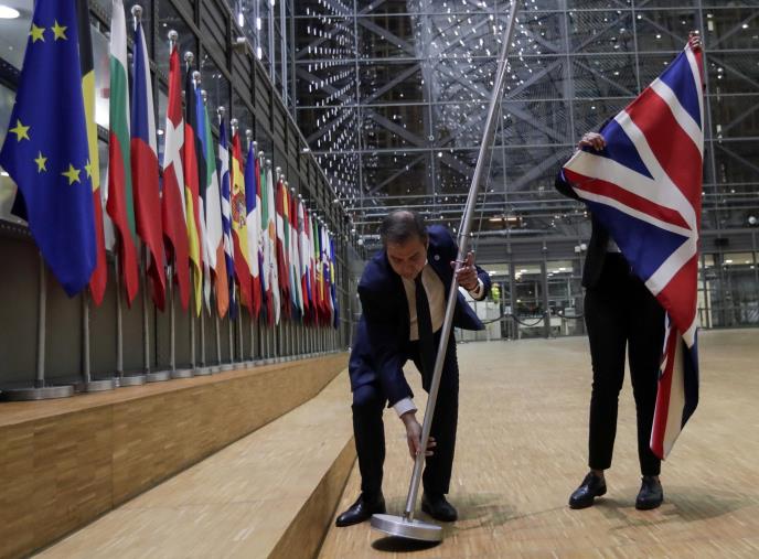 Zastava Velike Britanije uklonjena je danas iz zgrade Evropskog saveta u Briselu uoči izlaska Velike Britanije iz evropskog bloka u ponoć.