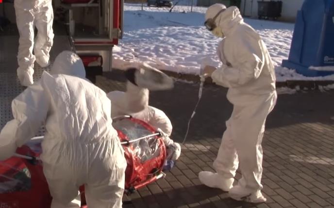Međutim, tokom prebacivanja pacijentkinje u vozilo, pošto je odlučeno da se odveze u Kliniku u Jaši, dogodila se nezgoda. Dok ju je ekipa medicinskog osoblja u zaštitnim odelima prenosila do vozila hitne pomoći u posebno izolovanim nosilima, jedan lekar se okliznuo o rampu i pao preko nosila na pacijentkinju, pa potom na zemlju.