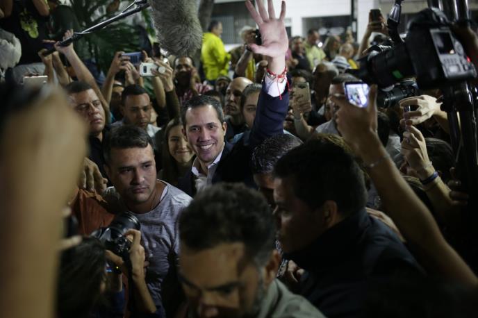 Gvaido je brzo prošao kroz bezbednosni punkt na aerodromu u Karakasu, na povratku sa turneje čiji je cilj bio dobijanje šire podrške za svrgavanje predsednika Venecuele Nikolasa Madura.