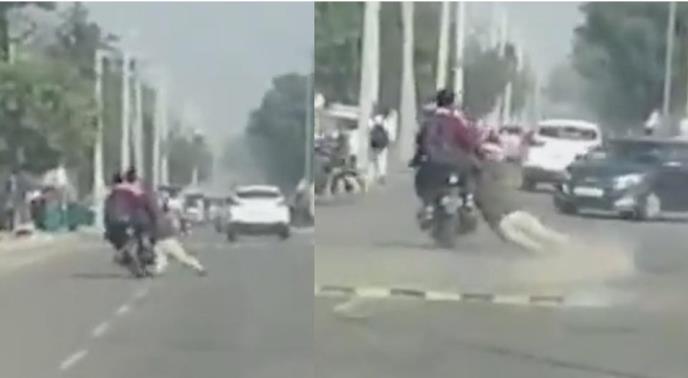 Na severu Indije policajac je pokušao da zaustavi trojicu mladića koji su kršili brojne zakone vozeći se motociklom.