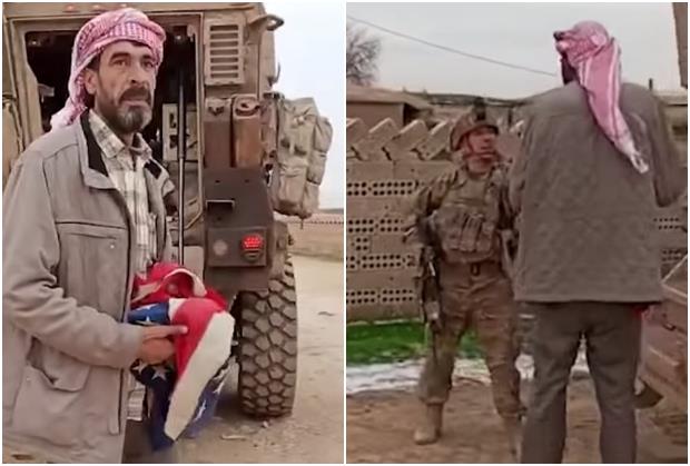Sirijac, inače čistač u Kamišliju, usudio se da skine zastavu sa američkog oklopnog vozila u konvoju i zgužva je u ruci.