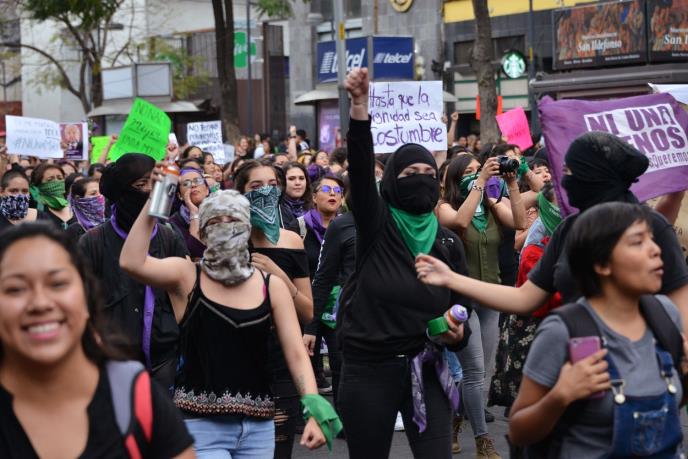 Nekoliko stotina demonstranata, predvođenih ženama, protestovalo je na Dan Svetog Valentina ispred predsedničke palate u Meksiko Sitiju protiv nasilja nad ženama, nakon ubistva 25-godišnje devojke i objavljivanja fotografija tog zločina u novinama.