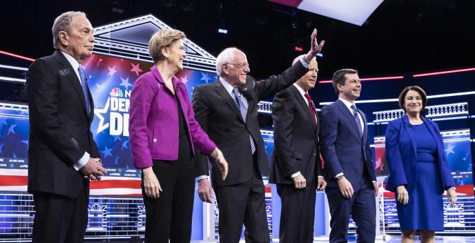 U debati su učestvovali Berni Sanders, Elizabet Voren, Ejmi Klobučar, Džo Bajden i Pit Butidžidž, koji su svi kritikovali Blumberga da zahvaljujući svom novcu pokušava da uđe u Belu kuću.