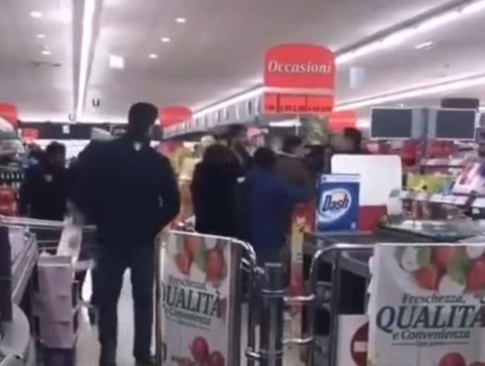 Na društvenim mrežama se pojavio snimak za koji se navodi da je snimljen unutar "crvene zone" u Italiji, gde je 50.000 ljudi smešteno u karantin, a na kojem se vidi tuča ljudi u supermarketu.