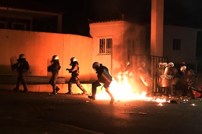 Na ostrvu Lezbosu u današnjim sukobima između policije i lokalnih stanovnika, koji su protestovali zbog odluke vlade da izgradi izbegličke objekte na tom ostrvu, povređena su 43 policajaca i 10 civila.