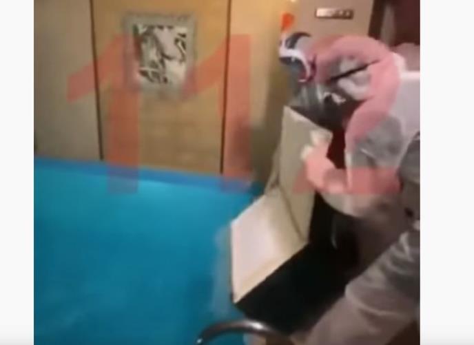 Na snimku koji se pojavio u lokalnim medijima vidi se suvi led koji se ubacuje u bazen u zatvorenom prostoru zbog kog je odmah došlo do stvaranja ugljen-dioksida, a prostorija se pretvorila u gasnu komoru, piše RT.