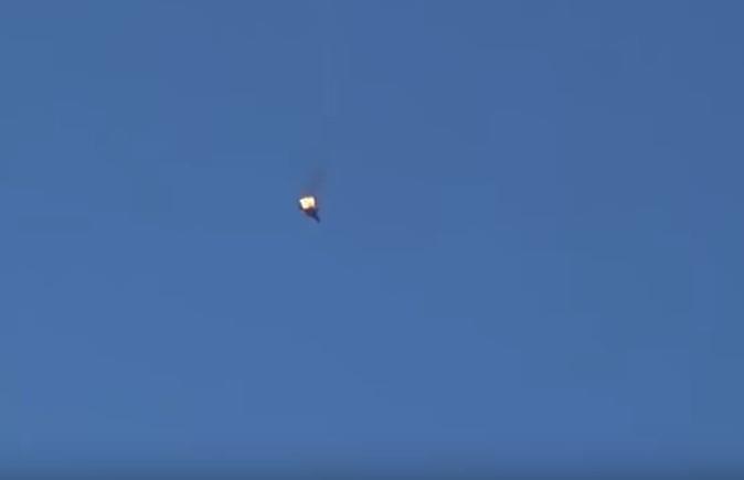 Avio je oboren u nedelju, a na snimku se vidi kako se sirijski avion u plamenu vrti i pada na zemlju. Na snimku se vide i dva bela padobrana.