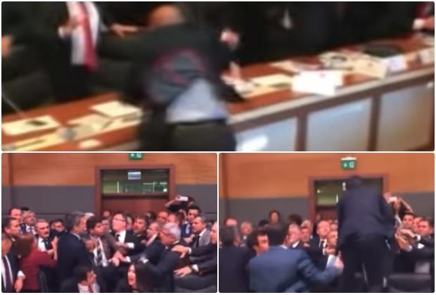 Video snimci su pokazali kako se više desetine poslanika iz stranke predsednika Redžepa Tajipa Erdogana i glavne opozicione stranke guraju i udaraju dok drugi pokušavaju da spreče tuču.