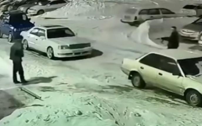 Sve je to zabeležila nadzorna kamera u jednom od kvartova u ruskom gradu Novosibirsku. Muškarca nije pogodio nijedan hitac, a sve je na kraju završilo rvanjem.