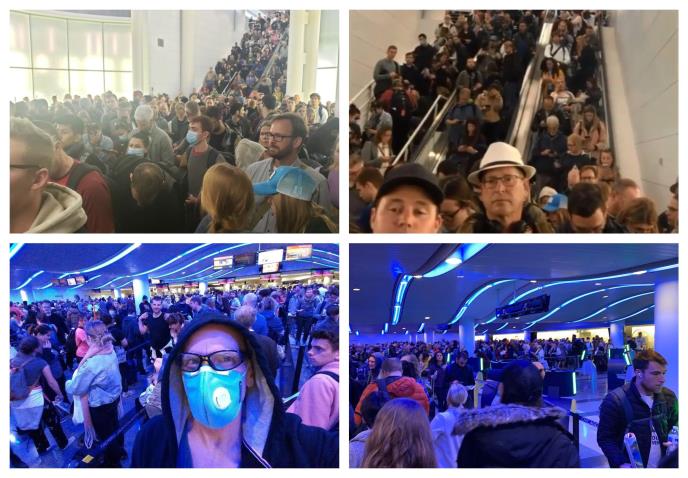 Svi korisnici društvenih mreža koji su okačili snimke sa prepunih aerodroma napominju da su satima morali da stoje u gužvi u kojoj je nemoguće držati propisano odstojanje,a da su ljudi generalno u panici jer ne znaju ko je iz kog žarišta stigao.