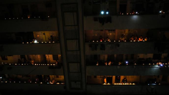 Milioni Indijaca ugasili su večeras svetla u svojim domovima i izašli na balkone i pragove sa lampama, svećama i lampicama, odazivajući se pozivu premijera Narendra Modija da osvetle "mrak korona virusa".