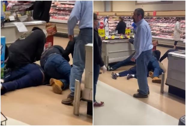 Zaposleni ga je udario u lice, a drugi kupci su ga savladali i oborili na zemlju.