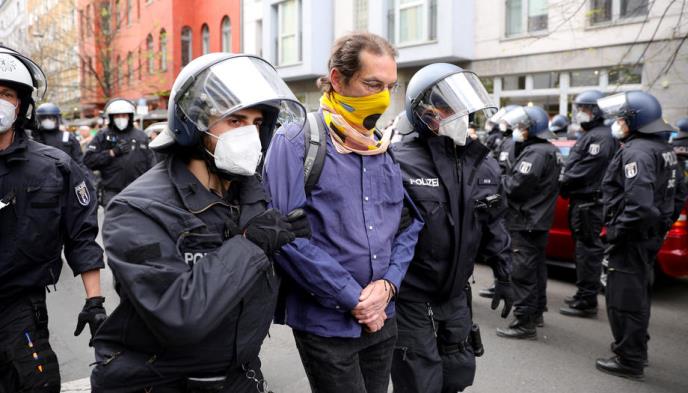 Oko 1.000 ljudi se okupilo u Berlinu da bi protestovali zbog ograničenja uvedenih zbog korona virusa, a nekoliko desetina je uhapšeno.