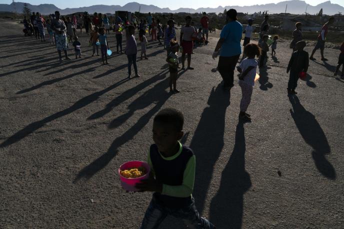 Više hiljada ljudi danas je satima stajalo u redu u južnoafričkom gradu Olieventhubosu čekajući hranu koja se delila.