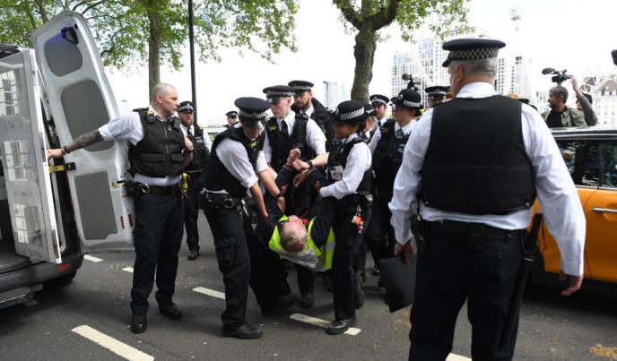 Jedan čovek je uhapšen nakon što je učestvovao u grupnom zagrljaju ispred sedišta londonske policije, u znak protesta protiv mera zatvaranja zbog epidemije korona virusa.