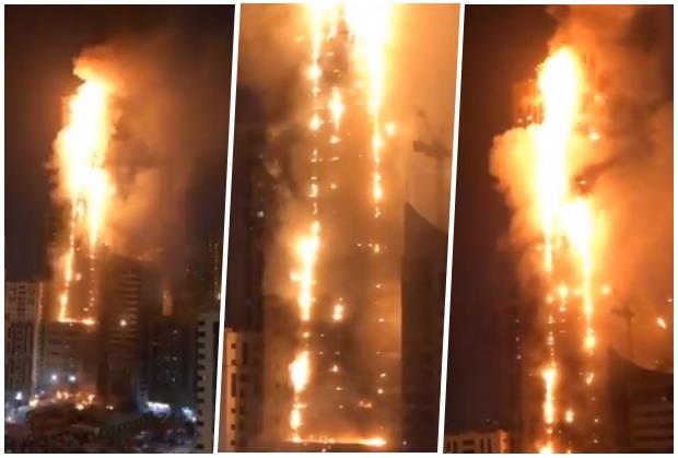 Veliki požar izbio je u soliteru u Ujedninjenim Arapskim Emiratima u utorak uveče, ali nije bilo izveštaja o žrtvama.