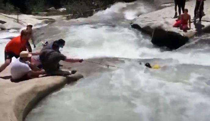 Na dramatičnom snimku koju su objavile kalifornijske vlasti uhvaćen je trenutak kada su prolaznici spasili 24-godišnjeg muškarca nakon što ga je tokom planinarenja u Kaliforniji povukao rečni vrtlog.