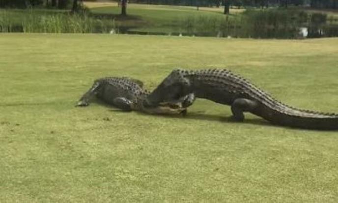 Jedan golfer snimio je ono što izgleda kao borba do smrti dva masivna aligatora na golf terenu. Matju Profit rekao je za Hilton Head Island Packet da su uočili aligatore i uspeli da snime redak prizor koji je trajao oko dva sata.