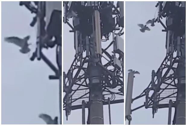 Jato ptoca je na snimljeno kamerama kako kida žice pričvršćene na 5G toranj.