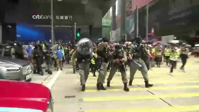 Policija Hongkonga upotrebila je danas biber-sprej kako bi rasterala demonstrante u centru grada koji protestuju protiv plana Pekinga da uvede nove zakone o bezbednosti.