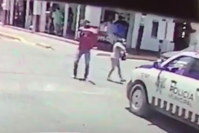 Skoro smrtonosni incident se dogodio u nedelu posle podne u mestu Zakatekas u gradu Gvadalupe, kada su muškarac i žena naglo prestali da se drže za ruke dok su prelazili ulicu, a onda zapucali.