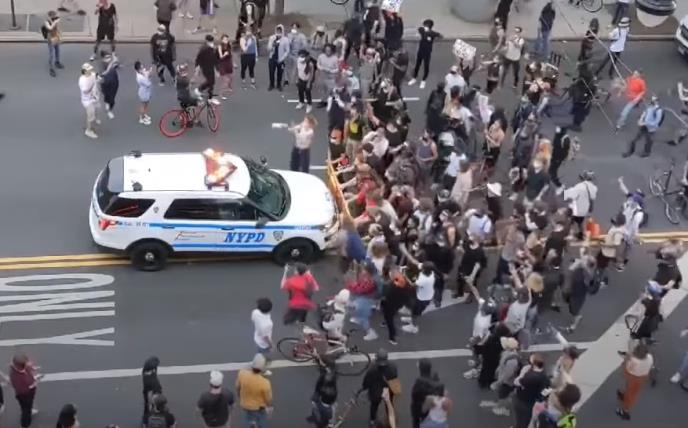 U Bruklinu su dva policajca autima krenula da gaze demonstrante.